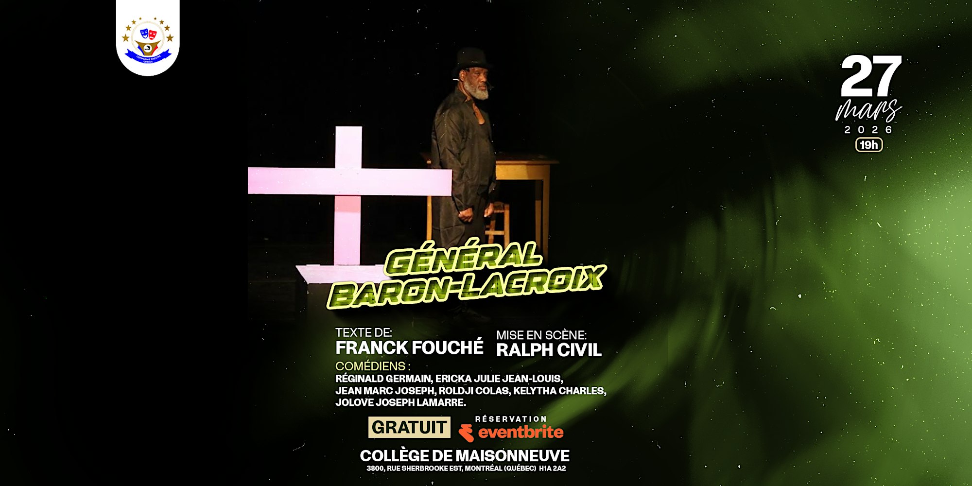 Général Baron-Lacroix de Franck Fouché 27 mars @ 7:00 pm - 9:00 pm 3800 R. Sherbrooke E 3800 Rue Sherbrooke Est, Montréal, QC, Canada Général Baron-la-croix nous plonge dans une réflexion profonde sur le [...]