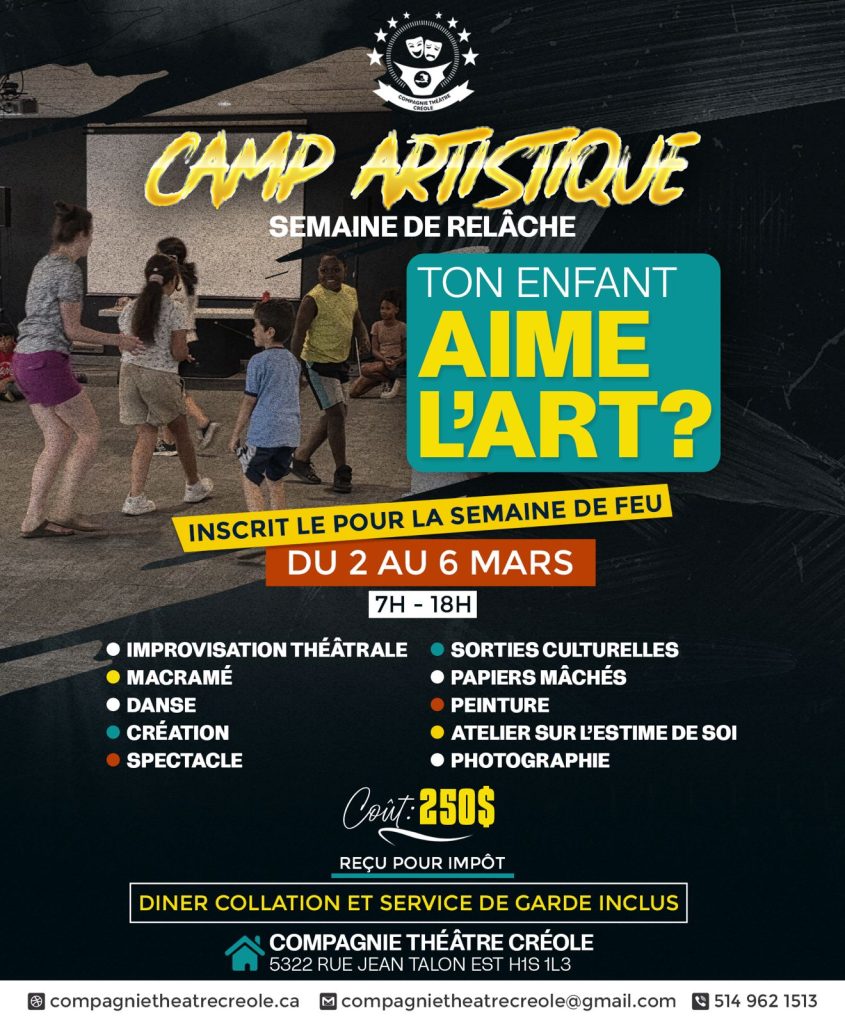La Compagnie Théâtre Créole est un organisme communautaire bien établi à Montréal depuis 12 ans. Elle a pour mission de promouvoir les artistes de la diversité. Apprenez-en plus sur nos activités en visitant notre site web ou nos réseaux sociaux.