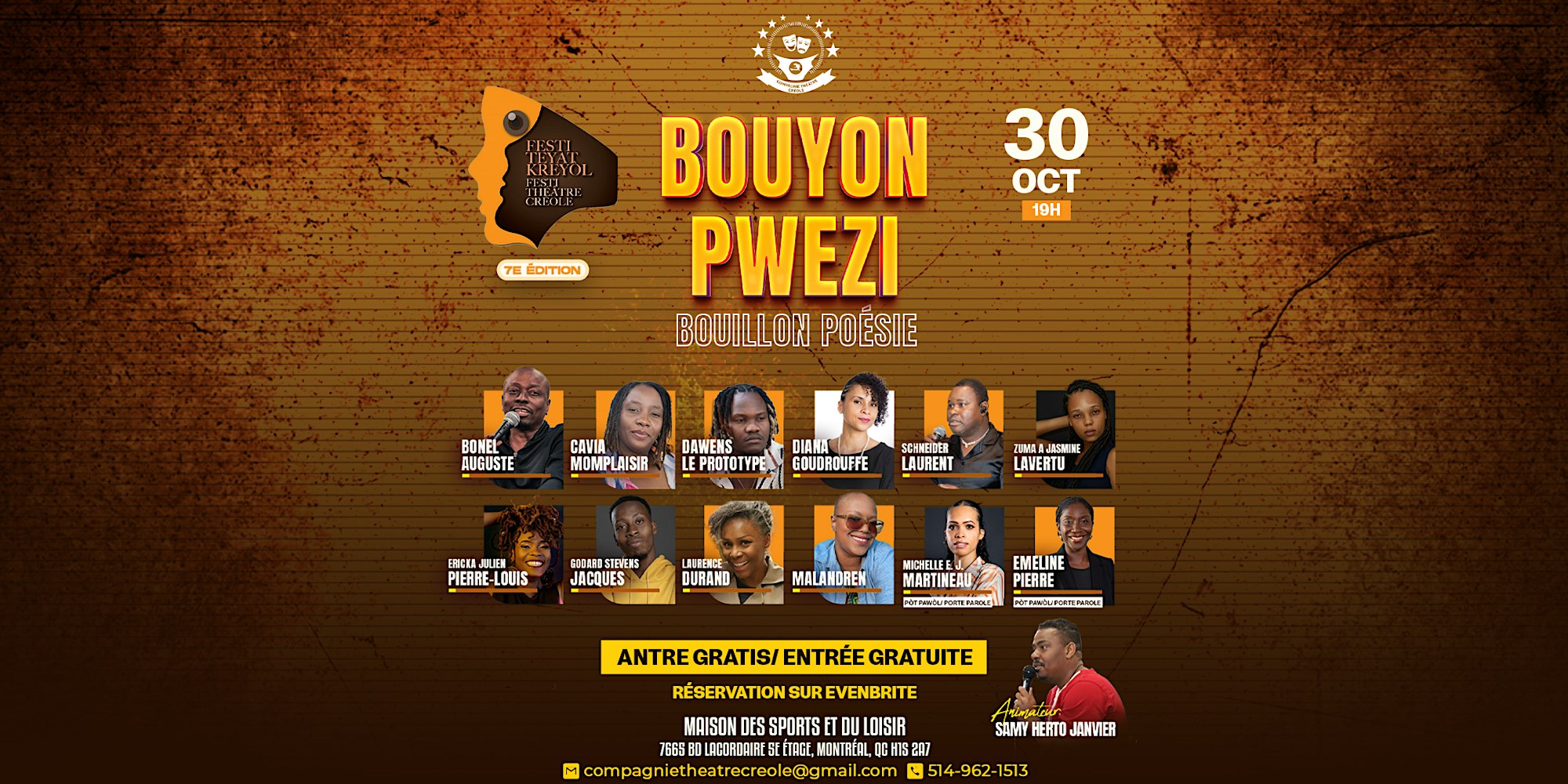Maison du Loisir et du Sport 7665 Boulevard Lacordaire, #2e étage, Montréal, QC, CanadaDouble événement par la Compagnie Théâtre Créole, lancement de l'incubateur [...]